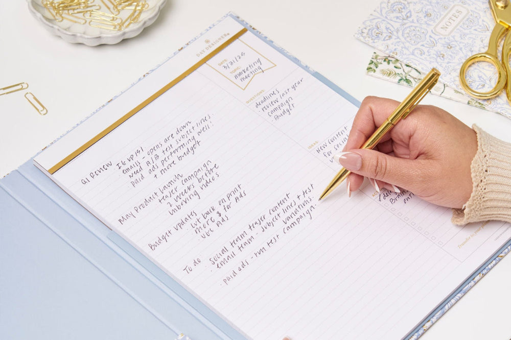 Add flair and functionality to any planner with Day Designer's notebooks, notepads, and desk accessories.