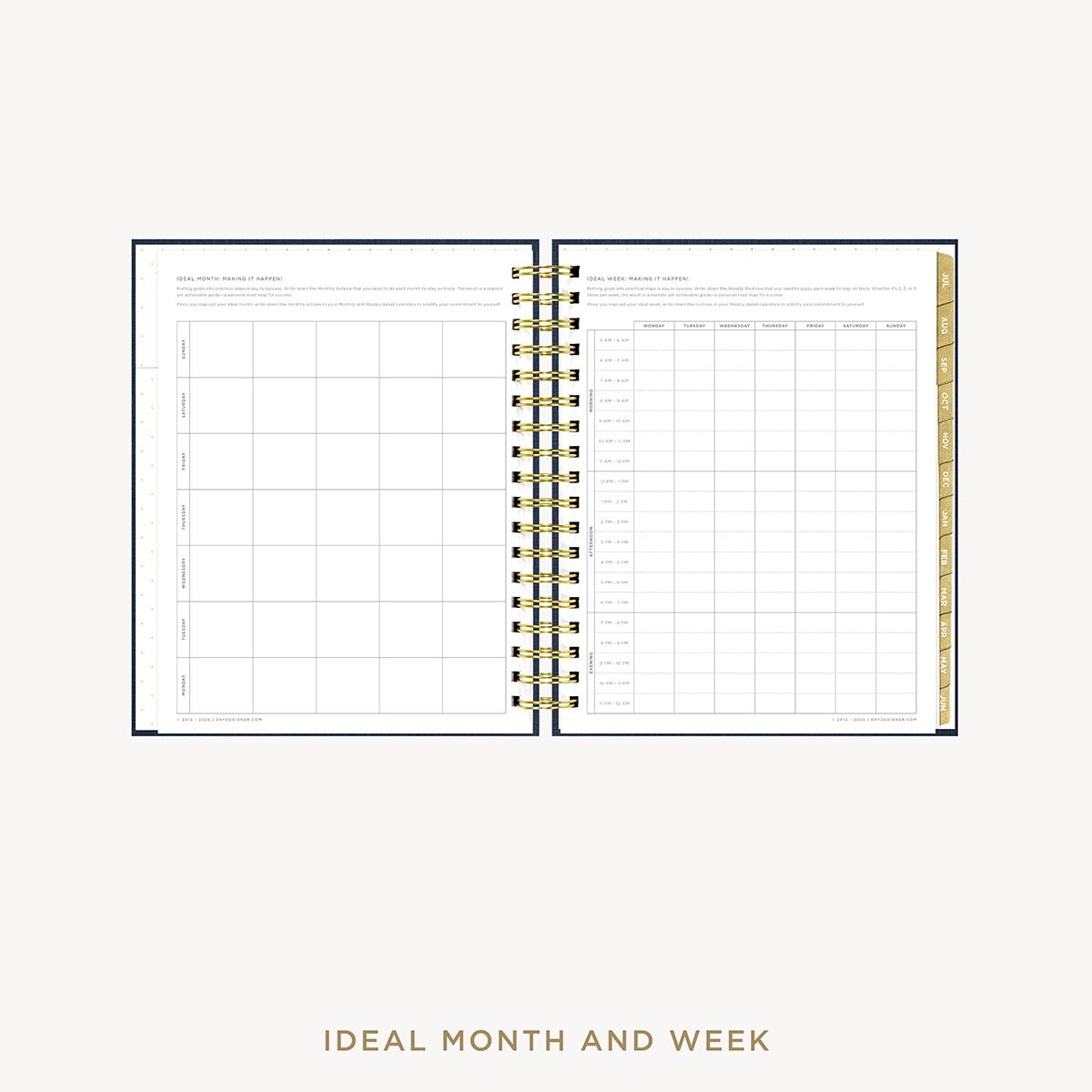 The complete weekly planner for goal-setting, productivity and organization. Includes monthly and weekly calendars PLUS daily planning pages, expense tracker, notes pages and more. Rich, deep navy with a luxe bookcloth texture – a polished, seasonless essential for the modern planner.