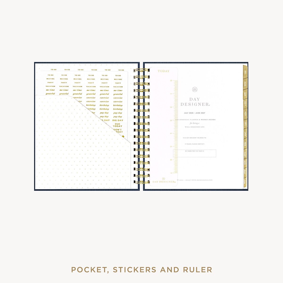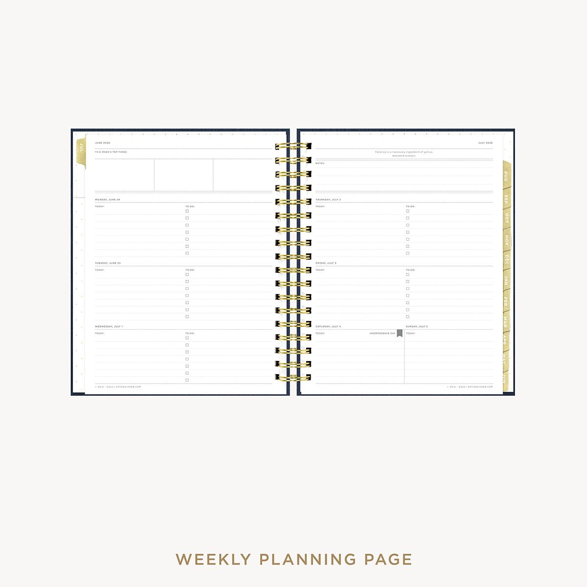 Each Day Designer is carefully crafted by hand. Throughout the year you can expect natural wear on your planner. Click here for tips on how to keep your July 2026 Weekly Navy Bookcloth Flagship Day Designer well protected.