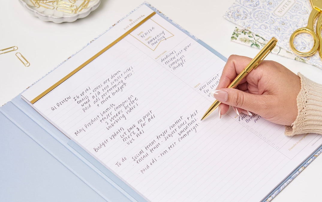 Add flair and functionality to any planner with Day Designer's notebooks, notepads, and desk accessories.
